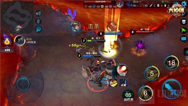 火焰山中火球初始是一个普通的火球,玩家可以通过击杀野怪让火球的能力得到进化。击杀野怪后会得到增加火球威力的BUFF,作为战士存在的孙悟空,攻击目标较多的三连火球是最佳的选择。孙悟空通过使用斗战冲锋技能冲入敌阵,开启晕眩后找准位置释放三连火球,命中率非常高。