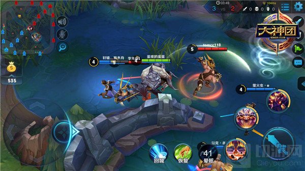 在团战中,因为牛魔具备着超强的抗打击能力,占据前排可对敌方带来无形的压力。在团战开始时,牛魔可先使用2技能,将敌方前排英雄击退,使敌方前后排英雄抱成一团,让己方范围性输出技能能同时命中更多敌人英雄。接着开启3技能,清除所有负面状态,并减少自身所受50%伤害,瞬间就如同铁塔一般,敌人打都打不动。最后直冲敌方人员较密集的范围,使用1技能,对范围内的敌方英雄造成击飞控制。配合携带技能“晕眩”,可为队友创造更好的输出空间。