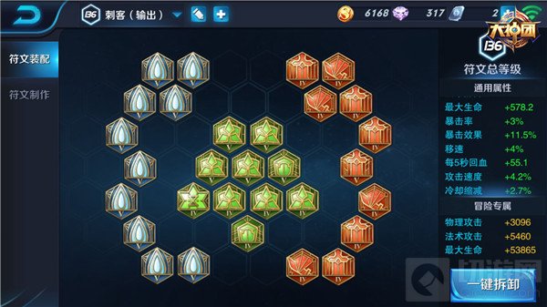 5级符文的价格较高,玩家很难短时间内迅速凑齐该套符文,不妨选用下4级符文进行组合,效果也非同凡响。虽然总体增幅相对5级符文逊色很多,但是胜在价格便宜,相对收集简单。和5级符文思路一样,4级符文也选用增加物理攻击和生命值的符文类型,确保荆轲的生存能力,将荆轲自身的能力发挥到最大化。