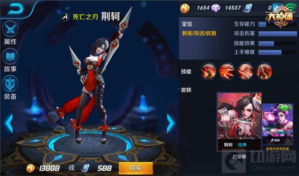 荆轲在符文选择是以攻击向的为主的符文,而荆轲在攻击属性上的需求是输出为主,增益为辅,追求极致的高爆发能力。荆轲的技能的效果较为突出,分别可以对敌人造成减速效果,增加自己的攻速和移动速度,而且效果都在50%,这也让荆轲可以选择纯攻击类型的符文搭配,少量附带增加护甲穿透的符文即可,其技能足以让荆轲其他的效果得到显著提高。荆轲的天赋技能可以让其在击杀或者助攻情况下清除技能CD,让荆轲可以再次释放技能,荆轲本身的输出越高,其击杀或助攻的速度越给力。