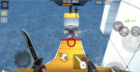 OK,在详细的教学下,也许你已经走过了前方的关卡。那么继续前进吧,在你的正前方有两条路,两条都是都比较难通过的。走哪条,那得看你怎么玩咯,左手边的是带有两个电锯的大马路,右手边则是一个小平台,一般人都会去尝试走大马路,死亡率较高。偷偷告诉你,小平台比较简单,安全措施也不错。