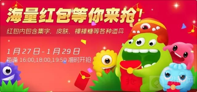 活动内容:海量红包等你来抢(红包内包含集字、皮肤、棒棒糖等各种道具),活动期间每逢16:00,18:00,19:50准时开抢!