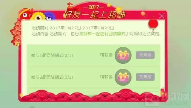 活动内容:活动期间,每日与好友一起进行团战模式即可领取活动奖励。