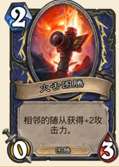 常见的一个狼魂+火舌可以轻松达到2个43嘲讽的作用,火舌本身没有攻击力,但是在嘲讽、冲锋随从的作用小,收益会逐渐提高。很尴尬的问题还在于3血要么解不掉,要么付出资源太多。