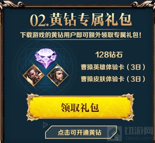 王者荣耀推出限时活动,携手黄钻给大家送礼物啦!钻石、娜可露露&曹操皮肤等你来拿!那么活动规则是什么呢?下面跟随切游一起来看看吧。