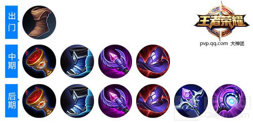 后期主要面对的是团战,这样的出装大幅度强化了张良的法术攻击,从而在团战中控制敌方英雄的同时,输出方面也可以不落下乘。装备虚无法杖被动效果增加的大量的法术穿透,在团战中面对法抗较高的坦克英雄时,可使得输出不会被大幅度降低。装备回音之杖增加的移动速度可使张良在追击或逃跑时,在速度上占据优势,且被动效果在团战中造成的小范围法术伤害也可以尽可能地消耗掉敌方英雄血量。