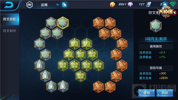 蓝色符文槽:【轮回】法术攻击+2.4,法术吸血+1%。