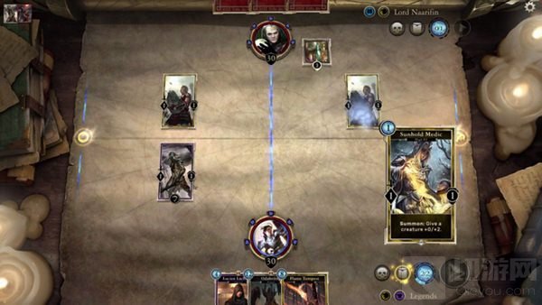 从视频中不难看出,游戏在卡牌出场、攻击、技能等特效方面,处理的非常好,而炫酷的战斗场面以及浓重的中古色彩选择也相当契合《上古卷轴》系列的历史构架。当然抛开这些之外,游戏的整体玩法与暴雪旗下的《炉石传说》基本一致,玩家都需要根据费用的限制来合理安排随从登场,并且通过随从和法术来决定何时打脸,何时站场。而游戏的获胜条件也是以扣除对方角色的全部血量为准。