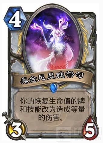 答案解析:对1血的对手使用红龙的战吼效果,可以理解为为对手治疗了14点生命值,而由于奥金尼灵魂祭司的效果效果影响,治疗变成了伤害,所以变成了对对手英雄造成14点伤害。