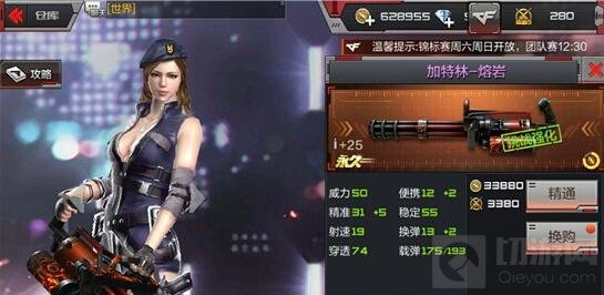众所周知,在CFM中武器是可以精通强化的,一把实战属性优异的武器必然要经过强化,有时有可能一把比较低端的武器经过强化后也能有不俗的属性,而优异的属性带来的实用性的提升也是让人不容小觑的。所以在拿到自己心仪的武器后千万不要忘记做升级强化,而武器的升级强化花费的仅仅是金币和精通点。那么接下来就为大家带来这把加特林-熔岩的终极进化,看看他在5次强化后的蜕变吧。