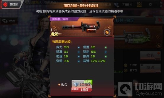 第二步:花费180钻换购为加特林-熔岩;