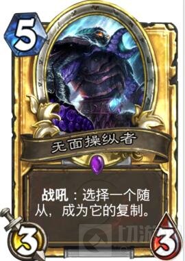 原理:无面无法复制敌方光环类效果,被系统判定为新建一个0血的随从,由于游戏机制,0血随从被直接摧毁了。
