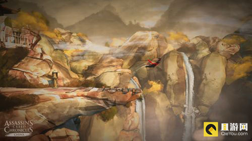 幸运的是,游戏本身的结构要比故事结构更清晰,不过同样缺乏激情。《编年史》的整体色调偏灰,再加上环境元素设置得很松散,结果让场景关卡给人感觉很空洞。但必须承认的是,关卡设计的很巧妙,玩家需要运用多个层次的背景,让人觉得这是个真实的地方,而不是一个二次元平面。另外关卡在垂直方向的延伸也很充分,玩家可以通过许多途径前往任务目标地点。探索地图,发现秘密通道,这方面的游戏内容可能是《刺客信条编年史:中国》最棒的地方了。