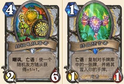 从设计角度来讲,每个职业都有一个帮助他们融入安戈洛世界的任务。一方面,我们希望任务套牌好玩又有趣,所以我们经常会提供额外的支持,比如牧师的“始祖龟执盾者”和“结晶预言者”。我们觉得任务牌真的很酷,但我们并不期望每个玩家都会在自己的套牌里加入它们,所以我们也尽力提供其他主题和有趣的单卡供大家探索。