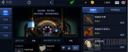 从上图可以看出,提升装备的方案有多种:强化装备、锻造装备、增福、附魔系统等。相信看到这些界面的时候,很多玩家应该不会陌生的,这就是端游中都有的玩法。