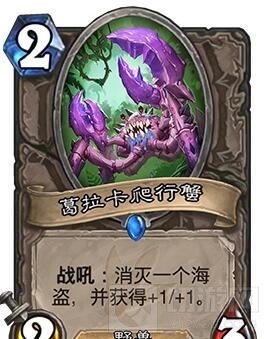 螃蟹的“再版”在作死帝看来是设计师对海盗快攻的妥协。它体现了炉石快攻王道的本质,设计师实在是想不出什么真正克制快攻的办法了……怎么办?嘛,炉石里最厉害的莫过于解场的同时再站场。那就把这两个效果合在同一张牌上咯!