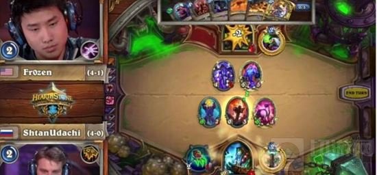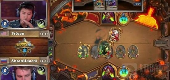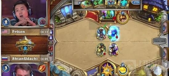 第四局Fr0zen龙牧对阵ShtanUdachi快攻萨,如果龙牧前期能压制萨满的生物并且处理好477那么赢面特别大。这次萨满似乎特别顺,不过牧师也能勉强应对。两人互相神抽,最后还是牧师占据了场面,并且灭了477,成功取胜。