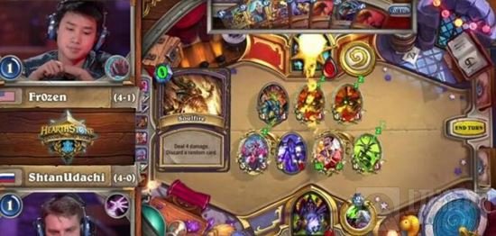 最终局Fr0zen宇宙术对阵ShtanUdachi宇宙法,这个对局是法师的优势对局,术士手牌也不好,法师则是要什么有什么。之后法师还铜须卡扎库斯获取两张药水,优势非常的大。术士为了巩固场面交出了无面,这局的赢面特别低,并且自己血线也很低。最后虽然神抽了雷诺,但法师直接红龙降低血线,之后被法师一波伤害带走。