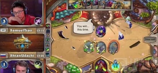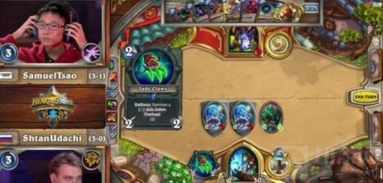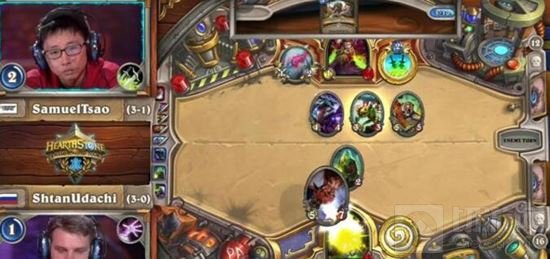 第一局ShtanUdachi宇宙冰对阵SamuelTsao青玉萨,这个对局是萨满的优势对局,能保证血量的情况下,后期的魔像会让宇宙法无法处理。这个对局并没出什么大的意外,萨满一直通过场面给予压力,法师并没有什么特别好的办法。