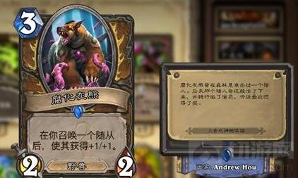 Emil:在各个游戏的翻译中,我们都会遇到文化的差异带来的阻碍。开发团队在制作一张卡牌的过程中,会加入很多美国的本土文化,而这些对于我们中国玩家而言都太过遥远。对于我们的团队而言,我们要做的就是理解开发团队想表达的意义是什么,然后去让他符合中国玩家的口味,例如“腐化灰熊”这张卡牌,它的英文卡牌趣文是引用了一首在墨西哥非常流行的歌曲的歌词,而我们在翻译的时候就借用了小李子在奥斯卡的梗,本地化不仅仅是翻译,也包含了文化的转译,我们在这方面会尽量做到最好。