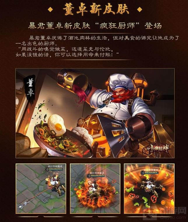 小米超神抢先服新版本已经在2017年4月8日进行新版本更新,本次更新新增董卓皮肤「 疯狂厨师」、调整了游戏UI、英雄数据、游戏装备等,同时对游戏BUG进行了修复…接下来一起来看看本期具体的更新内容吧!