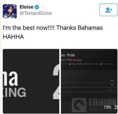 感谢巴哈马小七失利~成功拿到中国第一咯~