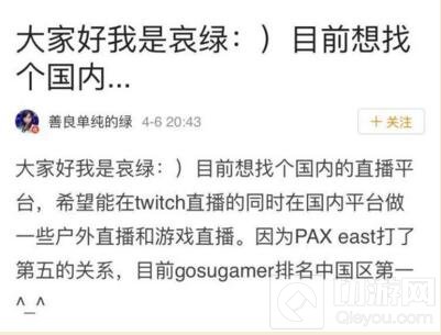 哀绿微博表示,希望能够在国内也找个直播平台,做一些户外直播和游戏直播。