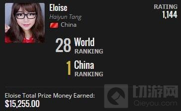 最近她状态很虎,在PAX East(北美黄金赛)拿到第五之后,哀绿一跃成为中国第一炉石选手,并在之前各项赛事之中斩获累计$15,255的奖金。