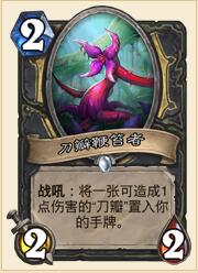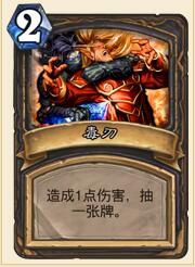 毒刃这张牌真的很好用,当然你可以说他是个2费死亡缠绕(※唉……)。但你论单卡法术质量怎么能跟术士比呢?魂火力代哪一个不是超模到姥姥家。我们抽一打一就已经足够了。同时,前一个版本的双刀扇+血法+蓝龙同样是5张稳定的过牌,我一直都感觉这样的配置很舒服,老板不容易度假。蓝龙走了带上毒刃也挺合理的,就当给老板寄了刀片——催它赶紧来“上班”!
