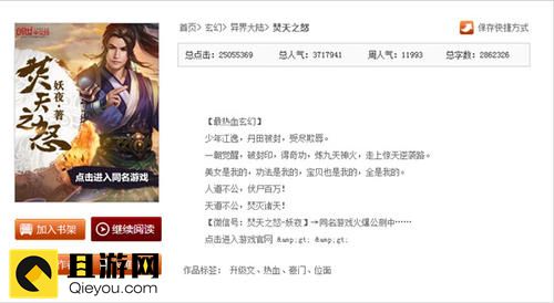 与传统玄幻小说不同。《焚天之怒》是以定制IP“焚天之怒”为核心,创作而出的。其粉丝不仅有小说读者,更有游戏玩家。因此,小说一经推出就立刻大热,跻身一线玄幻小说之列,紧追天蚕土豆《大主宰》、我吃西红柿的《莽荒纪》等超线小说。这足以看出定制IP的强效粉丝效应和造星能力。