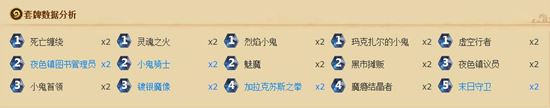 454(忘了叫啥了……使所有友方恶魔+1/+1的):这张卡!非常awesome!首先这套牌有超多恶魔(14张),加到一个恶魔就赚了。很多时候3费小鬼首领解决不了对面的3血怪,这时候454的作用就体现出来了!更何况这是一个群体buff,可以提高斩杀,更好的解场,站场,都是很强力的。(这套套牌是很久以前组了的_(:з」∠)_之前带的飞刀,后来飞刀分了,就随便加了两张进去,没想到超好用ԅ(¯ㅂ¯ԅ))