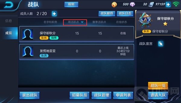 成员列表排序功能:可以通过点击列表上方的列标题,对应选项进行降序排序,这样可以更清晰的看到战队成员的表现。