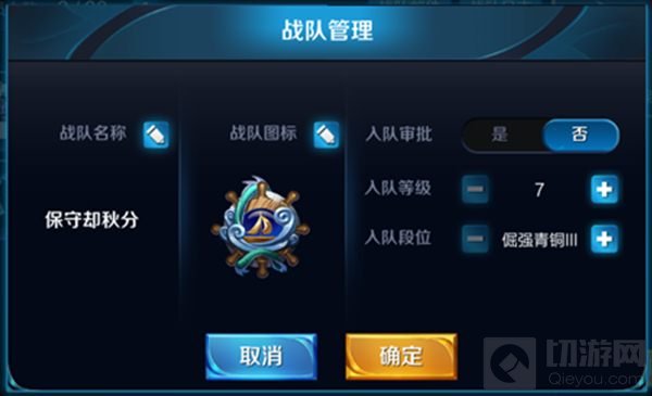 为了让战队申请功能更有效,并帮助战队更好的筛选出符合自身要求的队员,我们提供了入队条件设置,队长可配置入队申请,对申请者的等级和段位进行要求。