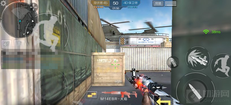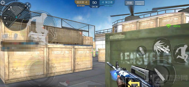 地图中有很多类似上图的木箱子,它们都是可以穿透的,我们要充分利用这点来做到杀人于无形。既然我们能穿透敌人,那么敌人也能穿透到我们 所以要有掩护点,上图中右侧的集装箱就是最好不过的掩护点了,它不会被子弹穿透,能让我们更加安全的透点。