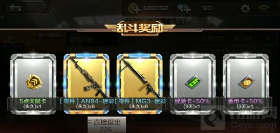 在武器大乱斗中不仅有着经验和金币的奖励还有着如同挑战的翻牌奖励,但与挑战的奖励还是有一定的区别,乱斗奖励只可抽取钻石礼包武器碎片和天赋点、经验卡、金币卡等奖励,每6天可翻牌一次。