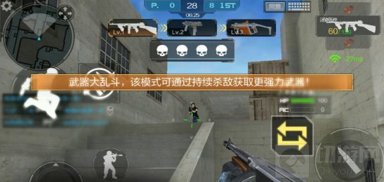 游戏一开始武器类型属于冲锋枪类型,有着射程近、高射速、穿透力差及重量轻这些特点,比较适合近距离空间范围较小的区域使用。在游戏中我们决不能在远处于敌人进行对枪,就算发现远处敌人也不用进行攻击,直接忽视在自身附近寻找下一个目标即可。