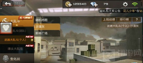 武器大乱斗(个人)战中目前只有两张地图,沙漠灰和新年广场这两张地图为什么被官方选为武器大乱斗的地图呢?我们仔细地观察这两张地图就不难发现,两张地图都属于老式经典地图,玩过CF和CFM的玩家都能轻松上手,且地图都为大型地图,地形复杂有着居多卡点位置,不同类型的武器都能轻松适应。