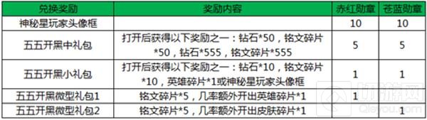 4月25日版本更新后~5月15日,玩家完成任务或对战均有机会获得五五开黑节专属道具:赤红勋章,苍蓝勋章。收集两种勋章可以兑换超值好礼,4月29日~5月1日限时开启两种勋章兑换永久英雄/皮肤哦!