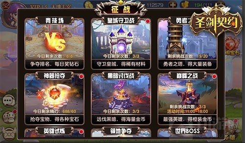 除了收集卡牌组建战队,简化操作轻松推塔外,更有多种征战模式让PK基情四射。游戏征战模式丰富多样,囊括了竞技场、皇城守卫战、勇者之塔、神器争夺、黑暗讨伐、巅峰之战等多种对战玩法,将让PVP、PVE战斗激情无限。