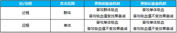 此次吸血机制的调整旨在将近远程的普攻吸血收益统一,规避了近战由于范围不可控导致普攻的吸血收益超出的平衡问题。我们希望在普攻吸血的感受上近程和远程都能保持一致,以往近程对单体的吸血效果很弱,但面对多单位时收益波动巨大,这样的感受对于近战显得十分突兀,优化后吸血的收益将更加平滑。