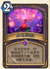 这是一张法术版的古加尔,古加尔从古神版本上线以后一只都没能进入主流构筑,原因也很简单,费用太高,效果太差,勉强算能配合的也就是扭曲虚空,灵魂虹吸,但是不管怎么看都太蠢。这张新卡不同于古加尔的地方在于,费用较低,能配合的卡也多了不少。除了扭曲虚空以外,还有卡扎库斯的10费药水,通常这种高费法术都是伴有清场功能的,上一个古加尔,然后清干净,显得极其愚蠢。而法术卡就不然,在2费放出高费法术清场以后还可以上一些随从达到返场,如雷诺 或者 大王(大帝减过费,通常使用后血量会较低)等。除此以外,在对阵某些快攻的早期,费用很紧张,可以暂时牺牲一些血量释放AOE,清空对面的场面,也能苟住。综合来看是一张不错的卡。