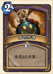 暗色炸弹是一张非常符合模型的2费打3的法术牌。在去年古神退环境前就是宇宙术的必备组件之一,之后人们才用暗影箭替代它,更何况还能打脸,在这套没带火车王无面一套斩杀的情况下,往往能提供最后的打脸斩杀。