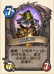 既然是狂野,有些卡不得不提,比如砰砰博士和洛欧塞布。在这套卡组里我带了砰砰博士(万金油,曾经的炉石第一橙)但是没有选择塞布。一方面砰砰是大哥型生物,其次他携带的小炸弹也是很厉害的亡语,能被恩佐斯拉出来,理由真的不用多说。塞布的泛用性其实差了不少,曾经5费压场型生物,附带封魔效果,通常作为进攻方,下回合就斩杀了(比如德的各种铺树人然后咆哮一套,萨满嗜血),作为被动的一方,也有防斩杀或者封魔的作用,比如针对冰法斩杀和盗贼,然而在现在的环境里只有在特定对局里有效果,不具备泛用性,多数对局是555白板。所以放弃。