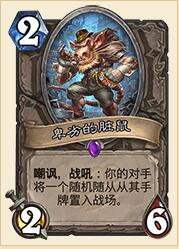 脏鼠是很多大佬认为的“上个版本最具有创意的一张卡”。在控制型套牌里有着极为特殊的作用,大家对此比较熟悉,我就不多说了,在打冰法的时候拉出个红龙真的能出奇制胜(这个月我渡劫的时候就是这样),谁用谁知道。