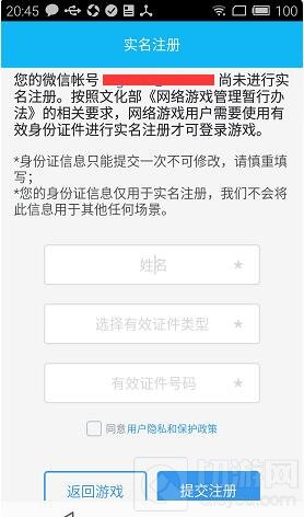 未实名的召唤师,在登录游戏时会弹出以下界面,只需要录入姓名及有效证件信息后点击“提交注册”后即可进入游戏登录界面继续游戏。
