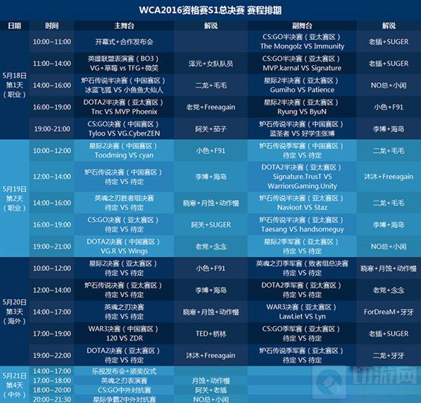 【WCA2016资格赛S1总决赛4日赛程排期与详细解说阵容】