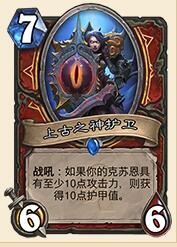 最后说一下这套牌的后期打法,和普通墙战一样,技能造成伤害,上古之神护卫奶血,然后克苏恩可以作为补充斩杀,有效地解决了战士变技能之后,护甲不够用,血量不充足,技能打不准的劣势,在实战当中,干死若干个奶骑,牧师,对抗法师也有不错的胜率,这也是这套牌能够渡劫成功上传说的关键!