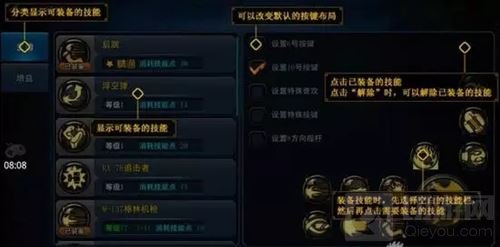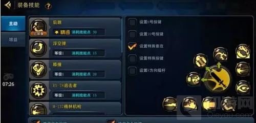 先来看一下技能界面的整体布局,跟五测没有什么区别,分为主动技能和增益技能。按键布局上由上次的三种增加到现在的五种,让玩家有了更多的选择空间。