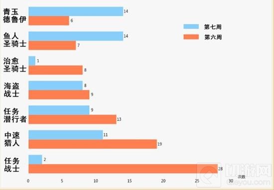 第六周赛场形式分析- 任务潜行者、中速猎人和任务战士稳居出场率前三。在任务体系大热,前期普遍偏弱的环境下,异军凸起的海盗战出场率紧随其后。与此同时,鱼人圣骑士、快攻德鲁伊和奇迹潜行者也更多地出现在了全民实力赛的对局中。