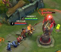同一路的2塔和高地塔在30秒内被连续推掉时,水晶会增加一个4500点血量护盾,持续15秒。